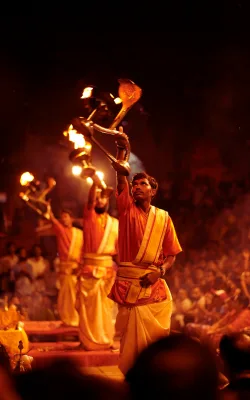 Witness the mesmerizing Ganga Aarti, explore the sacred ghats, and seek blessings at the revered Kashi Vishwanath Temple.